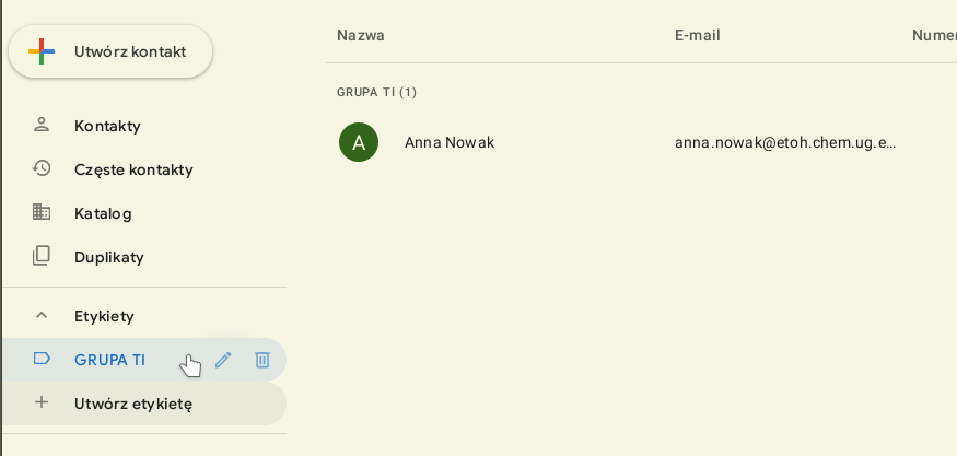 Wszystkie dodane do etykiety kontakty będą widoczne po kliknieciu nazwy etykiety.