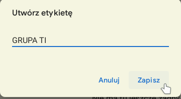 W menu po lewej stronie utwórz nową etykietę, nazywając ją: GRUPA TIwC: