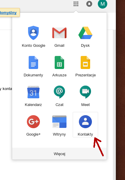 Będąc zalogowanym na swoje konto Google, wybierz Poczta: