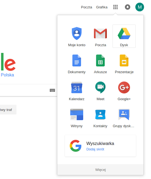 Otwórz stronę http://www.google.pl/ - zaloguj się do Google i wybierz Dysk: