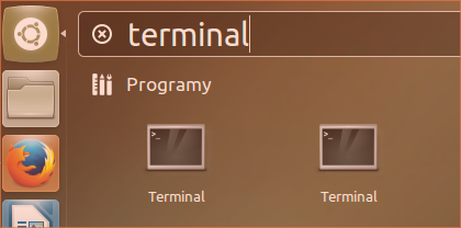 Uruchamiamy Terminal np. skrótem klawiszowym Ctrl-Alt-t lub szukamy go w Panelu głównym: