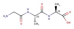 Narysuj strukturę poniższego tripeptydu, który składa się z trzech aminokwasów: glicyny-alaniny-alaniny (Gly-Ala-Ala). Uwaga! kolejność aminokwasów jest ważna, Gly-Ala-Ala to zupełnie inny peptyd niż np. Ala-Gly-Ala!